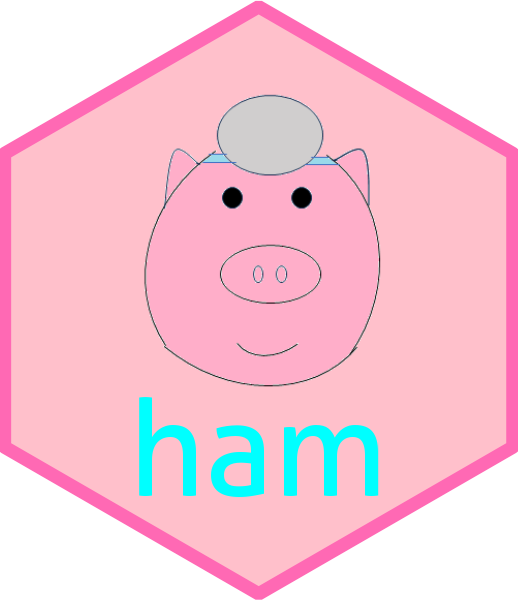 The goal of ham is to provide different modeling approaches to evaluating healthcare programs (or programs in other fields) with regression analysis. This includes standard regression methods like linear (OLS) and logistic regression. And ham adds options for differences-in-differences models as well as interrupted time-series analysis. DID and ITS models offer options for causal modeling. What is unique about ham is that it creates datasets with constructed variables for DID and ITS models, optionally it can add top coded outcome variables, propensity scores, and provides some interpretation of model results. Additionally, Cronbach’s alpha can be calculated for such things as patient surveys. As the logo of Dr. Ham suggests, the ham package can help illuminate your results.