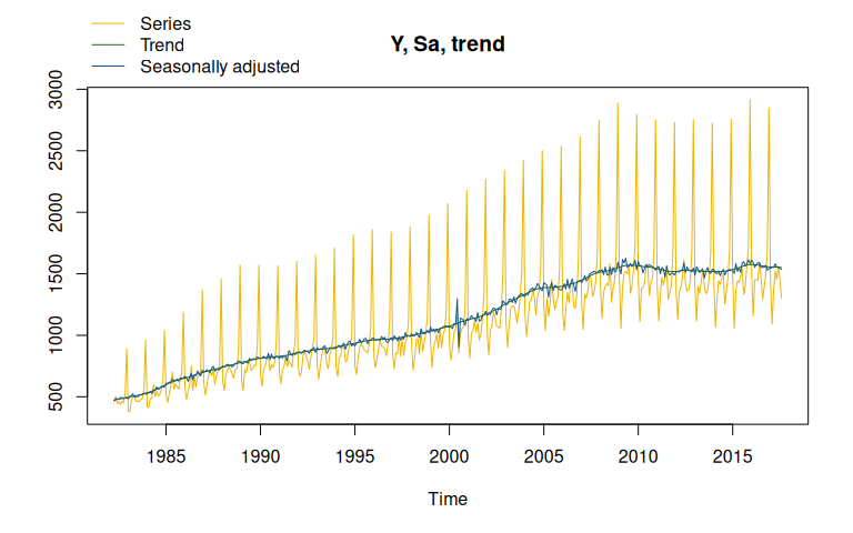 modelling (rjd3tramoseats::tramo()) and SEATS decomposition