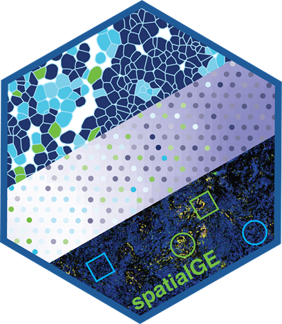 An R package for the visualization and analysis of spatially-resolved transcriptomics data, such as those generated with 10X Visium. The spatialGE package features a data object (STlist: Spatial Transctiptomics List) to store data and results from multiple tissue sections, as well as associated analytical methods for: